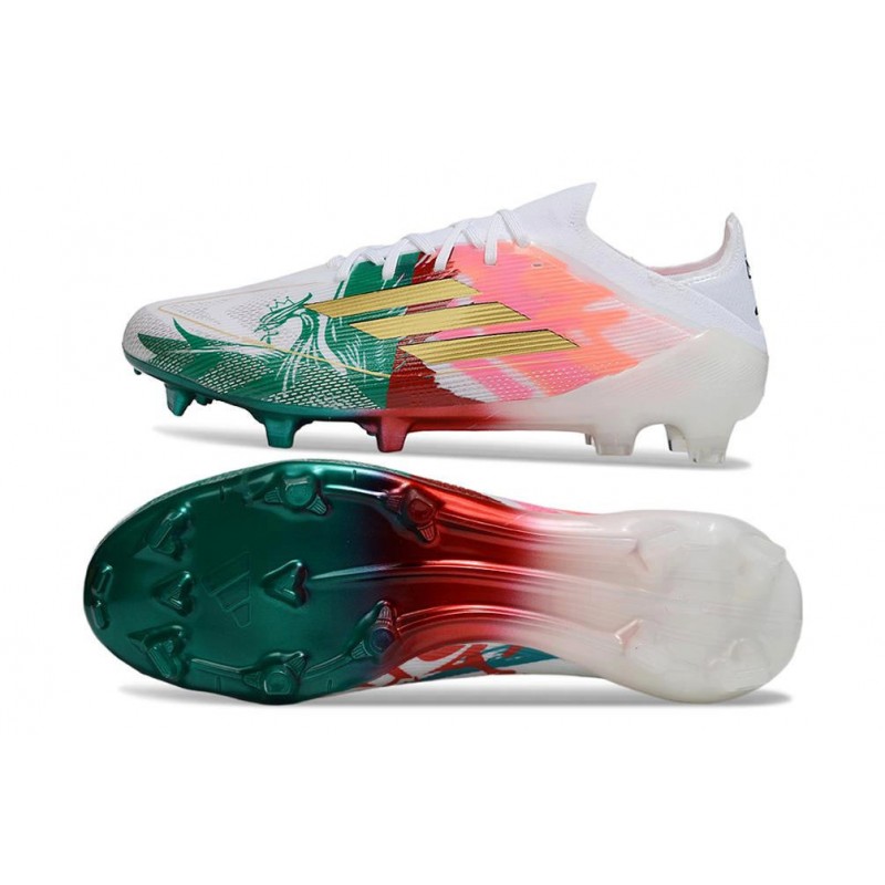 adidas F50 Elite FG Neuf Crampons Blanc Rose Vert Or