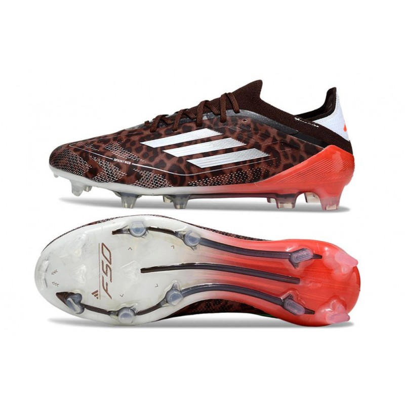adidas F50 Elite FG Neuf Crampons Léopard Argent Rouge